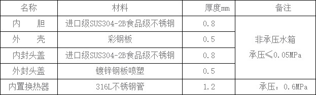 2.2 水箱材料技術參數