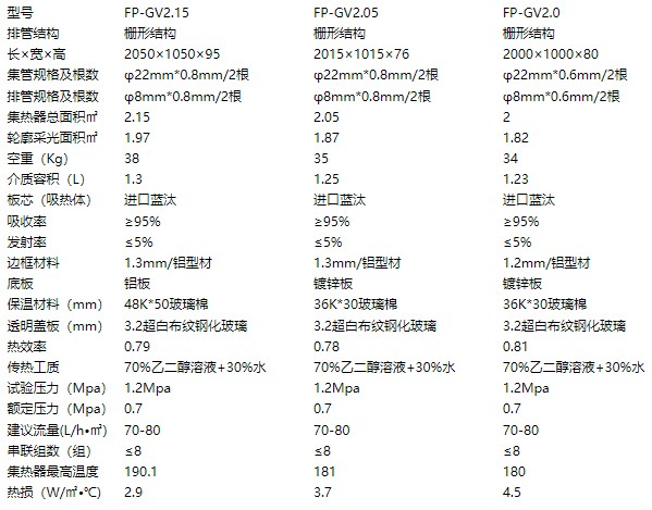 高效柵形工程集熱器參數(shù):